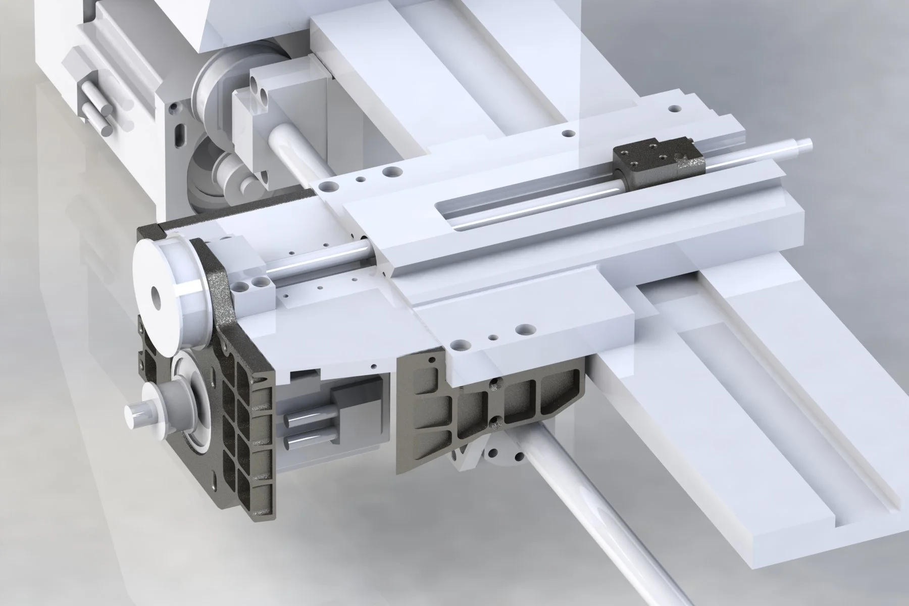 På undersidan av linjärstyrningen monteras en hållare för karbidskär.